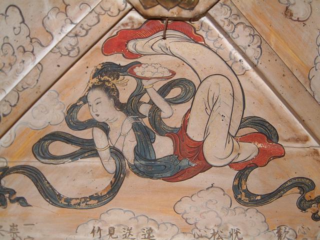 観音造立から224年経った1352年、熊野別当蜂起の兵火で社もお堂も焼失し、以後仮堂舎時代が長く続くが、江戸の元和五(1619)年頃再建(天蓋図1・2)、安永三(1774)年に「霊泉寺」の寺号を許される。